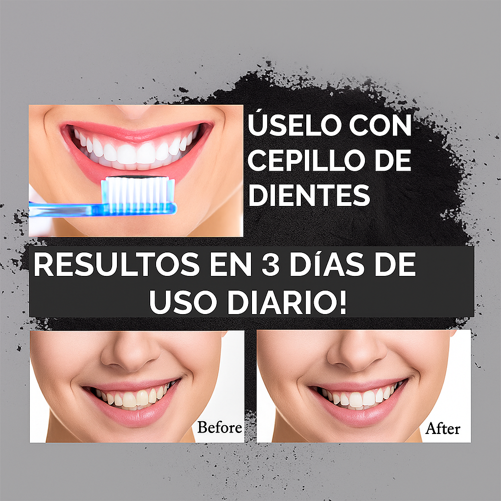 El carbón activo limpia el esmalte , eliminando las manchas y dejando visible el color real de tu dentina.