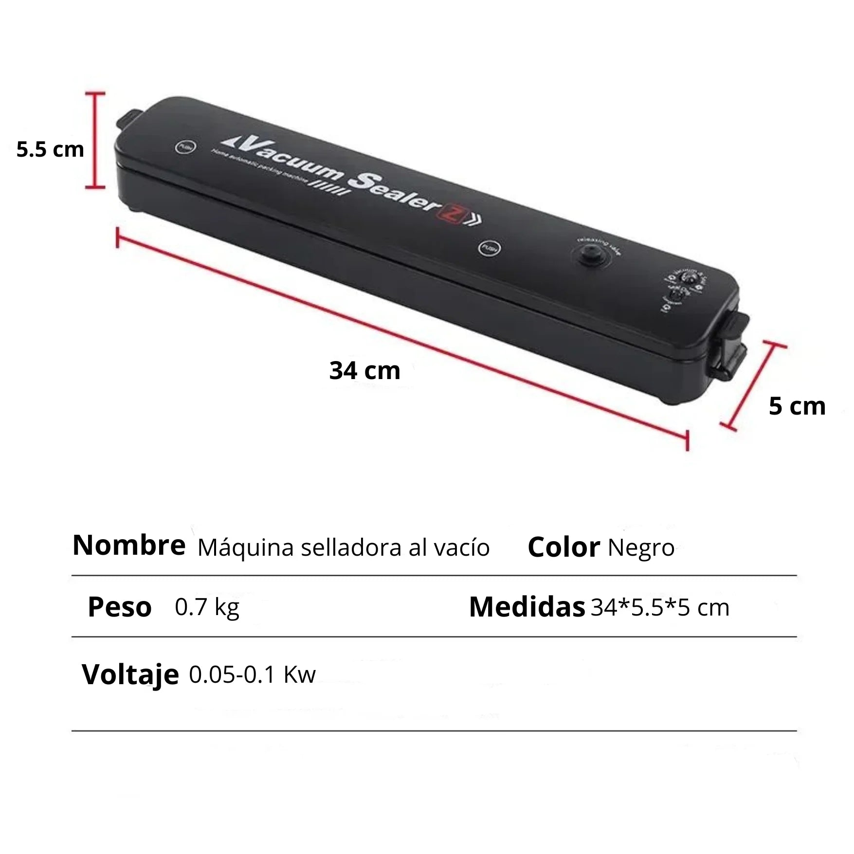 Y lo mejor: ¡incluye un rollo de 5 metros de bolsas para sellar lo que quieras sin límites!